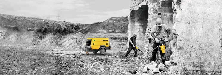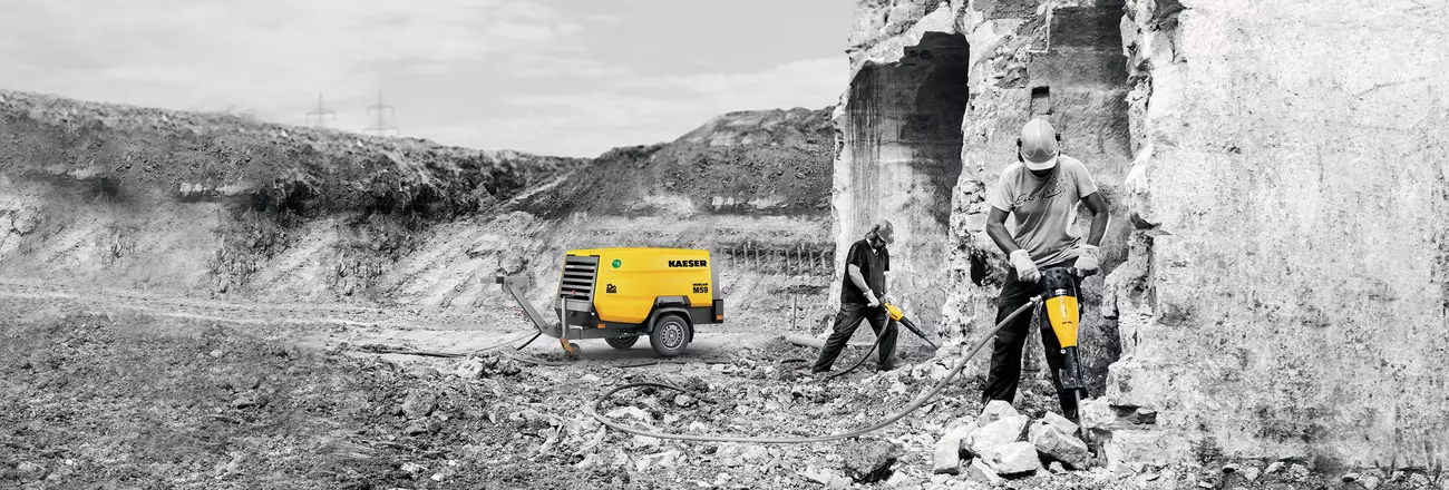 Tough ambient conditions and demanding applications are the order of the day on constructions sites, making a robust and dependable compressed air supply indispensable. But portable compressors from KAESER can deliver much more. In our blog post, we highlight the enormous versatility of a MOBILAIR system.