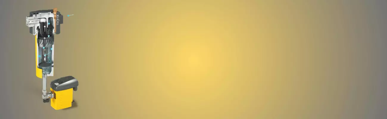 Cyklonowe separatory kondensatu służą do usunięcia wkroplonego kondensatu ze sprężonego powietrza. Dzięki temu wstępnie je oczyszczają. W znakomity sposób przedłuża to żywotność osuszaczy i wkładów filtracyjnych. Z wyglądu przypominają filtry sprężonego powietrza. Zamiast elementu filtracyjnego, wyposażone są w kierownice. Wprowadzają one wlotowy strumień sprężonego powietrza w ruch wirowy. Resztę pracy wykonuje siła bezwładności. Wyrzuca ona krople kondensatu w dolnej części obudowy separatora cyklonowego na jego ścianki. Następnie tak oczyszczone sprężone powietrze opuszcza separator, a kondensat zbiera się w dolnej części urządzenia. Stąd jest usuwany przez automatyczny spust kondensatu ECO DRAIN. Tak usunięty kondensat zgodnie z przepisami ochrony środowiska powinien być uzdatniony w separatorze wodno-olejowym typu AQUAMAT. Następuje w nim rozdzielenie kondensatu na czystą wodę i resztki olejowe.