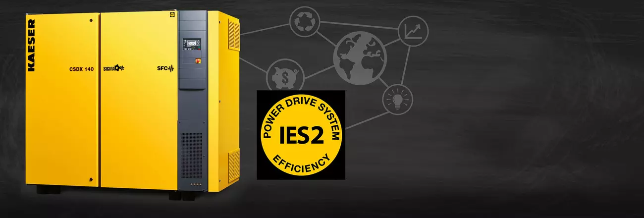 Dodatkowo sprężarki śrubowe z serii CSD/CSDX cechuje łatwość w obsłudze. Cały system sprężarki śrubowej z regulowaną częstotliwością wyróżnia się najwyższą efektywnością energetyczną. Sprawdzona jakość firmy KAESER KOMPRESSOREN przekłada się na niskie zużycie energii elektrycznej. Sprężarki śrubowe serii CSD/CSDX z silnikami reluktancyjnymi przydzielono do klasy IES2. Zgodne z normą efektywności energetycznej IEC 61800-9-2 są to najwyższej klasy rozwiązania.